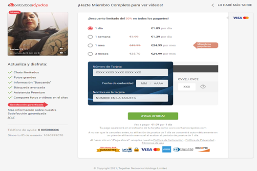 La inscripción en Contactos Rápidos es totalmente gratuita, pero si quiere utilizar todas sus opciones, tendrá que pagar un paquete.Usted puede optar por pagar por un día, una semana, un mes o un trimestre.