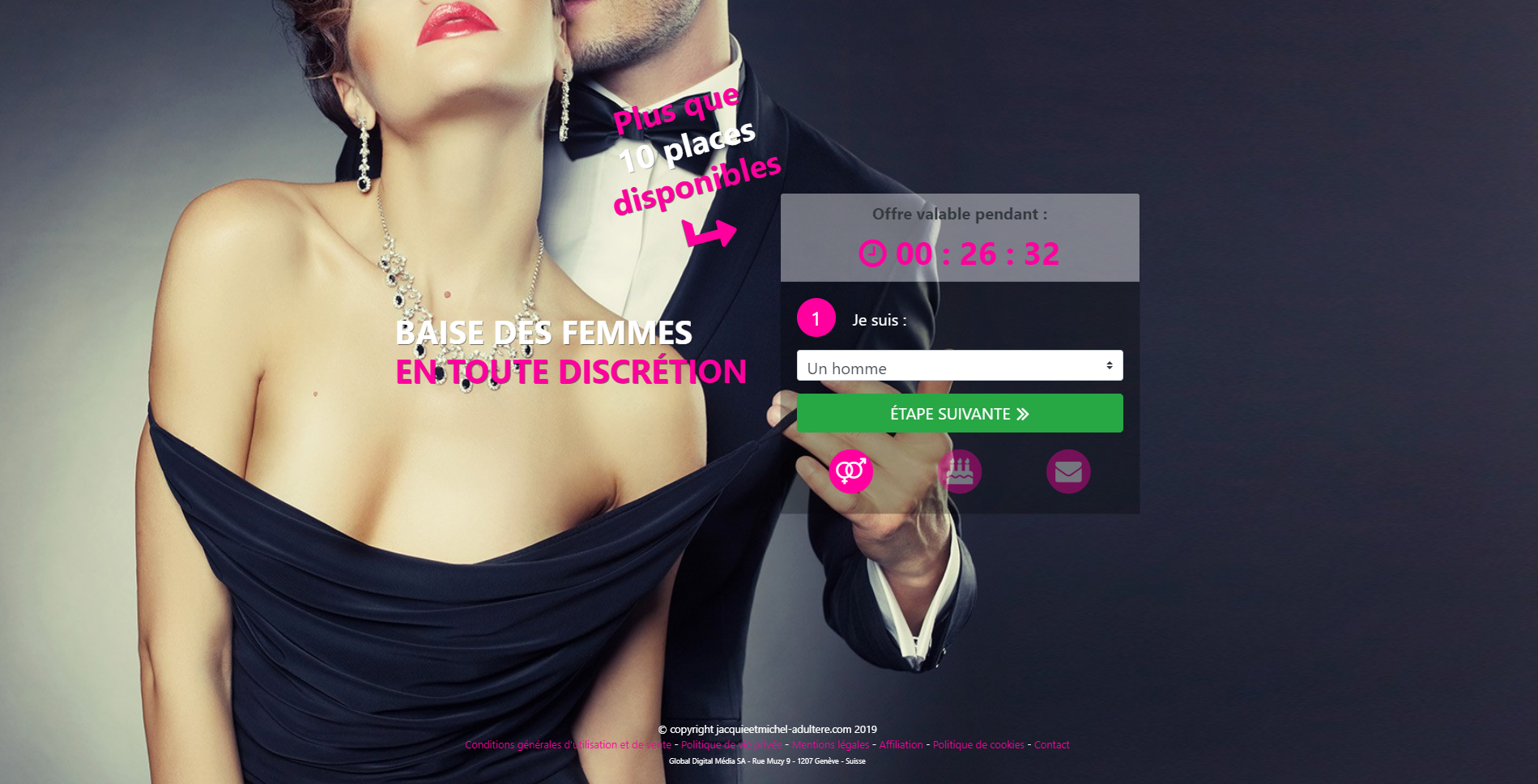 Beaucoup plus performant que d'autres sites, jacquieetmichel-adultere vous donne l’opportunité de rencontrer des femmes ayant les mêmes affinités que vous. Vous êtes un homme en recherche d’adrénaline et d’une femme qui rêve de vous séduire ? Vous avez envie de susciter le désir à nouveau mais votre quotidien vous oblige à la discrétion. Ce site est fait pour vous.