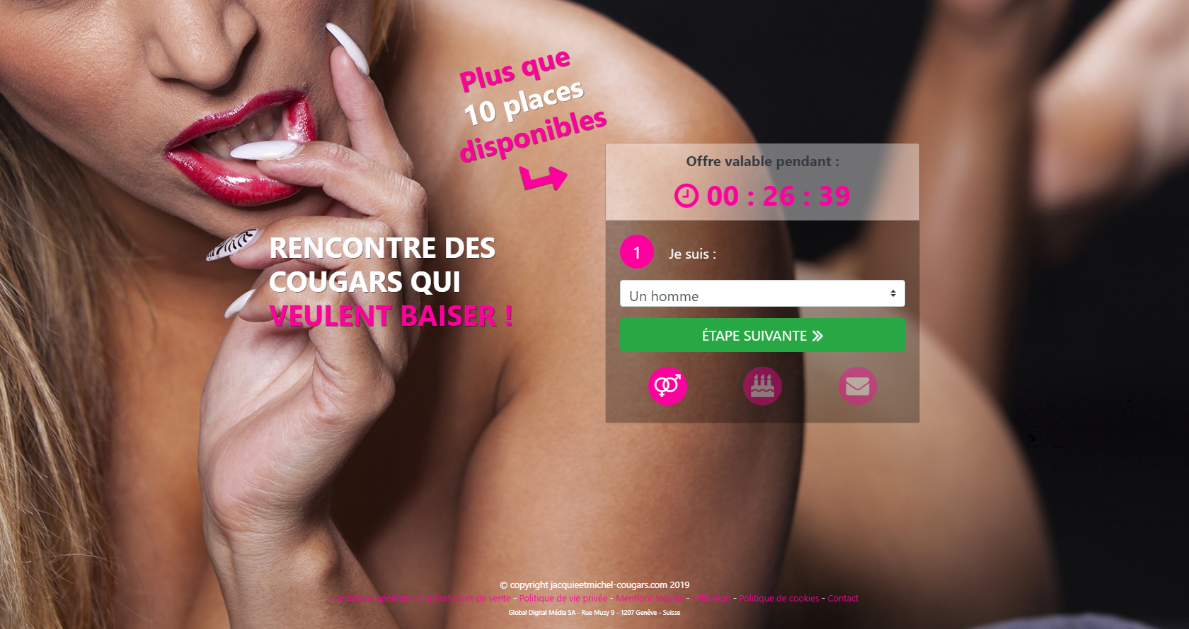 Bien plus efficace qu’un site de rencontre classique jacquieetmichel-cougars vous offre la possibilité de faire des rencontre cougar proche de chez vous. Vous êtes un homme en recherche d’expérience et d’une femme remplie d’assurance ? Ce site est fait pour vous. Les membres de la communauté jacquieetmichel-cougars sont là pour une chose : profiter des plaisirs de la vie. Vous aurez donc beaucoup plus de chance de faire des rencontres et conversation sexualisé sur ce site qu’un autre.
