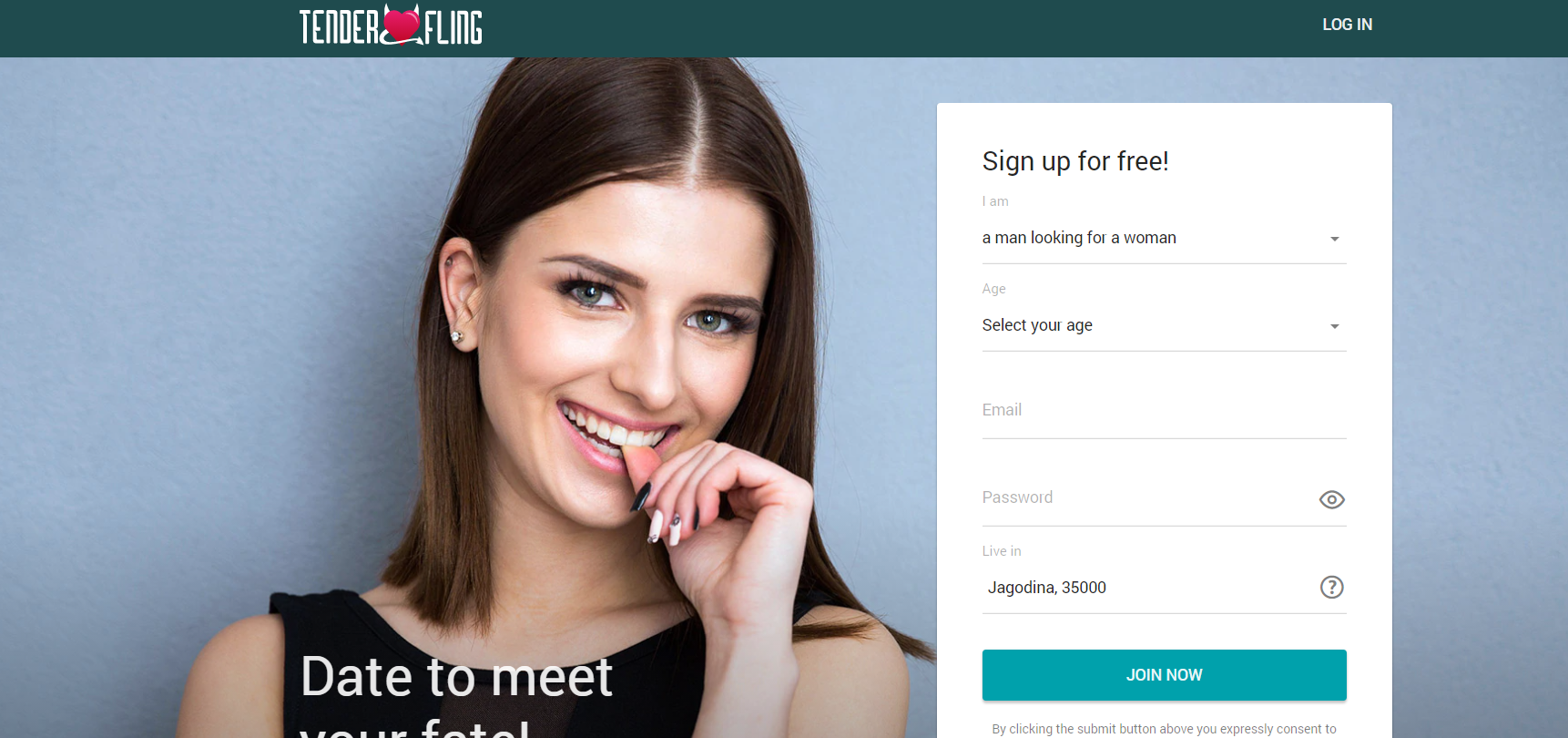 Go to tenderfling.com and you are greeted by a smiling young nymph and the caption “Date to meet your fate!” alongside the ‘sign up for free’ form. That pretty much tells you that this is a dating site and if you are looking to have some fun dating, then this is the place you ought to be in!